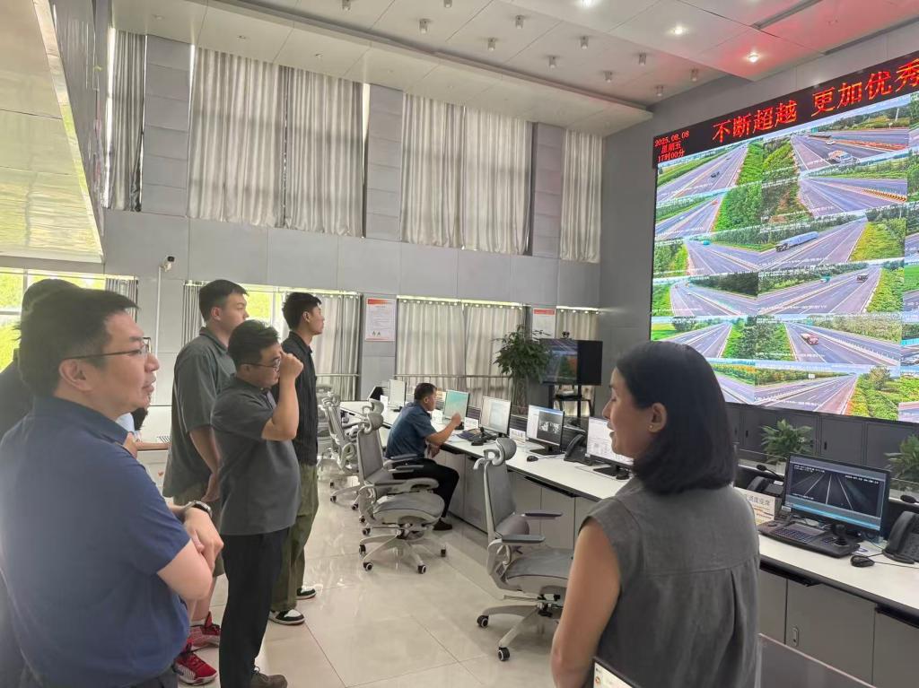 2025年8月8日至9日,长安大学“智察微险·道路长安”暑期社会实践队赴河南许昌开展实践。在指导教师张驰、王博带领下,实践队一行与越秀交通团队深入交流,实地探访河南尉许高速公路、河南兰尉高速公路运营管理中心,考察新质生产力下公路安全养护作业的智慧化转型,在理论与实践的碰撞中深化对公路养护高质量发展的认知,感受公路养护的智慧引领、高效驱动的发展征程。
